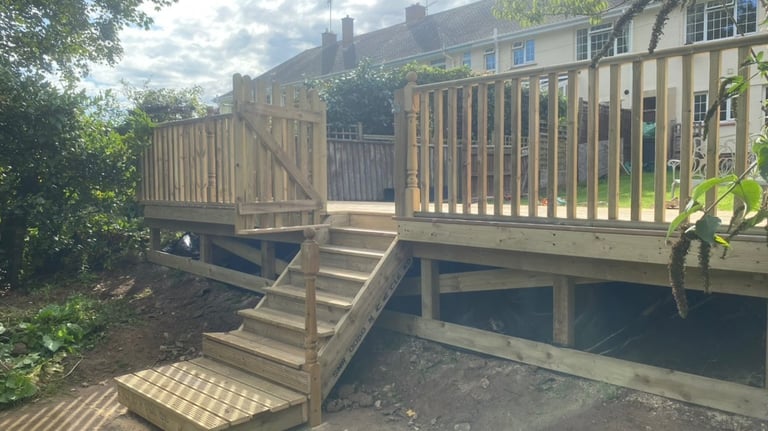 Raised & Multi-Level Decks: Ideal for sloping gardens, providing flat areas for seating where there was once unusable space.