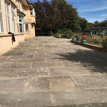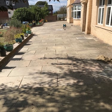Hard Landscaping: View our work with Indian Sandstone, porcelain patios, and decorative pathways.