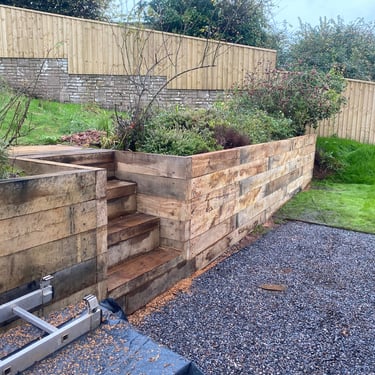 Garden Structures: Look for our retaining walls, raised sleeper beds, and turfing projects that create clean, modern garden lines.